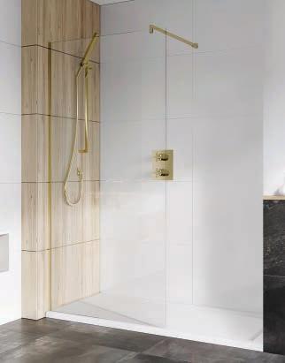 Wetroom panels available in 8mm or 10mm glass thickness with Polished Chrome, Matt Black, Brushed Brass or Brushed Nickel finish, with Fixed or Pivoting Deflector Panels and Round or Square Brace Bars.