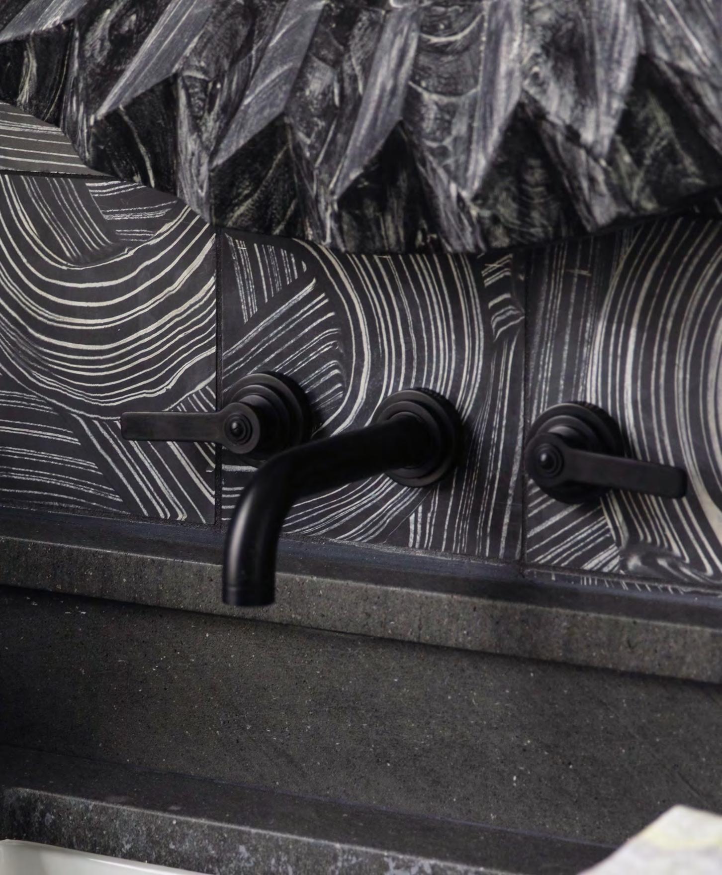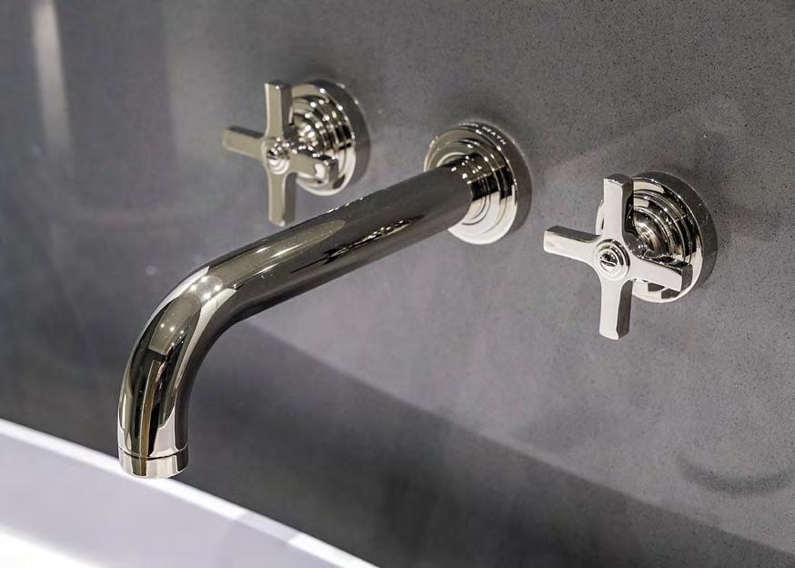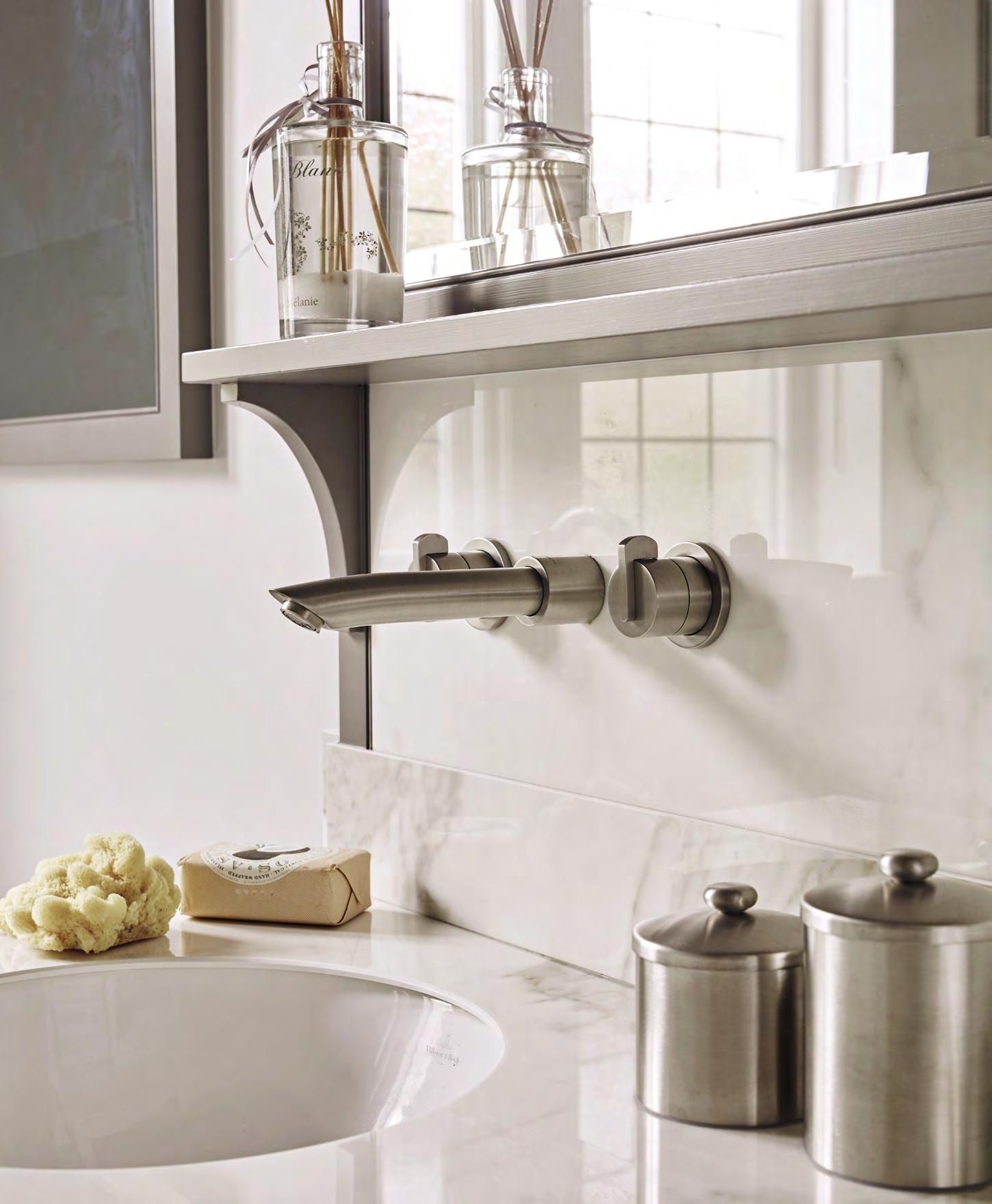 leftandabove:V117 WallmountedbasinmixerswithN9566liquidsoapdispenserin SSF stainlesssteelfinish ImagecourtesyofThesecretdrawer