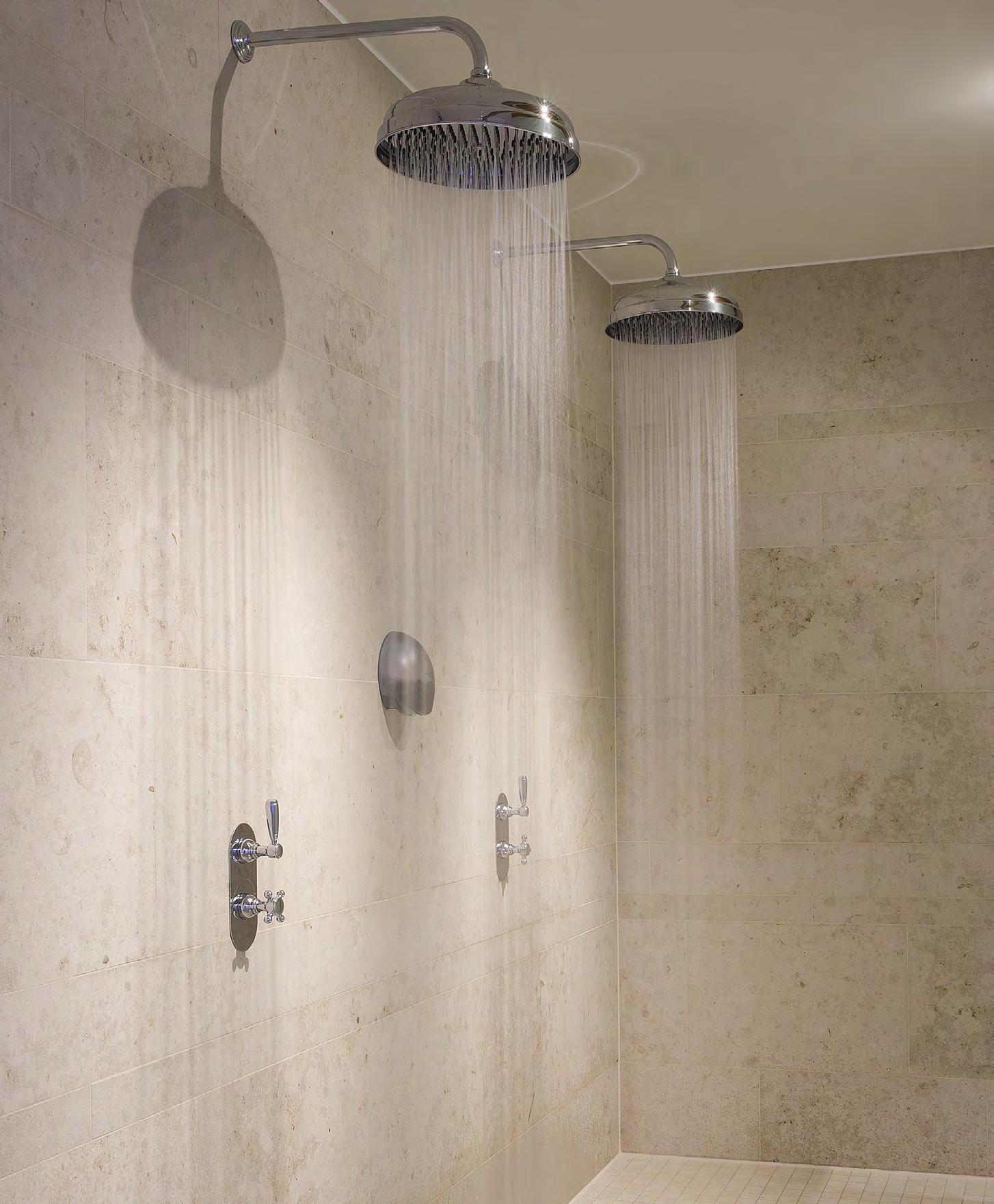 V201-TM ConcealedthermostaticshowervalveswithV262 showerarmsand V913 300mmskirtedshowerheadsinCPchromeplatefinish