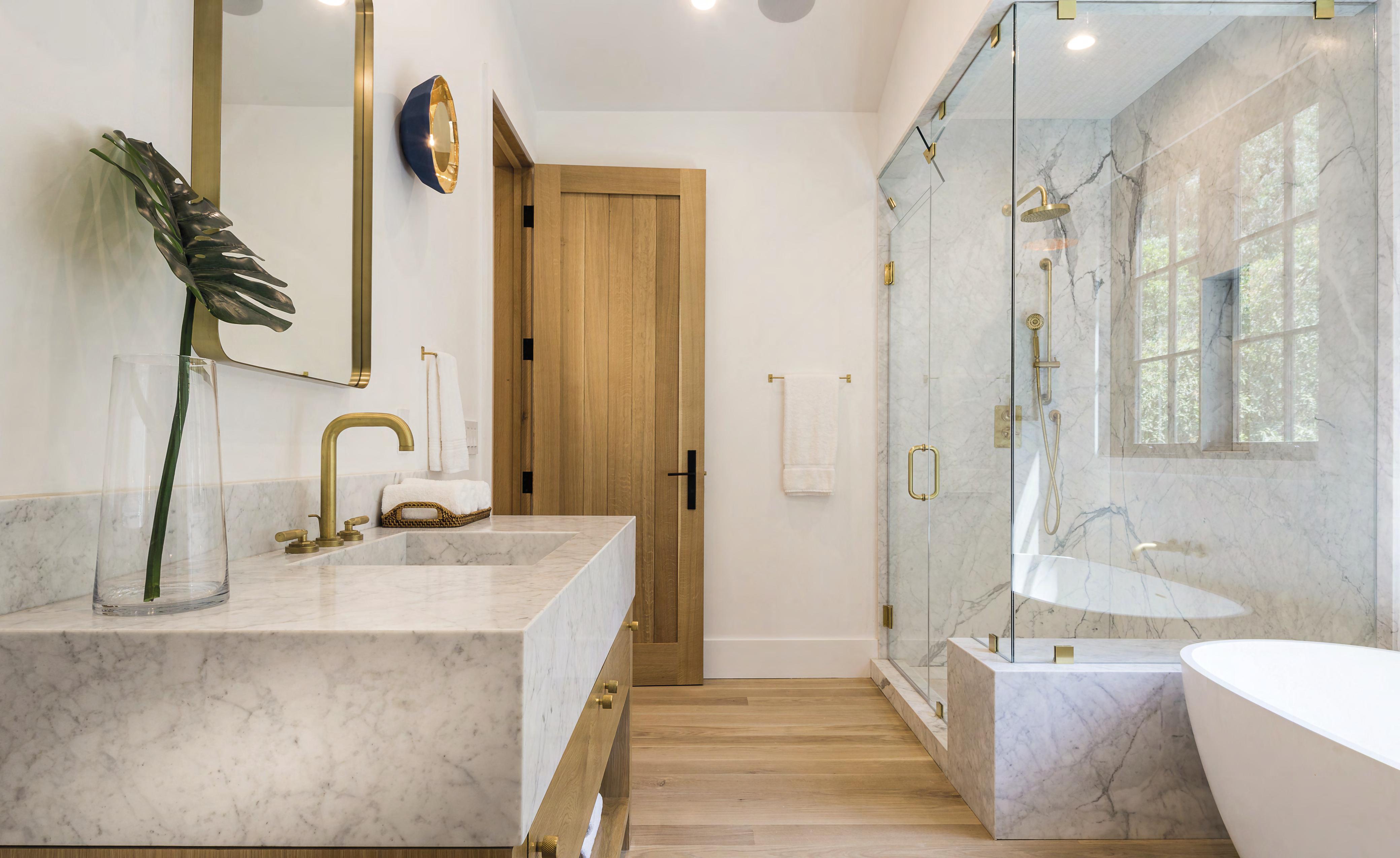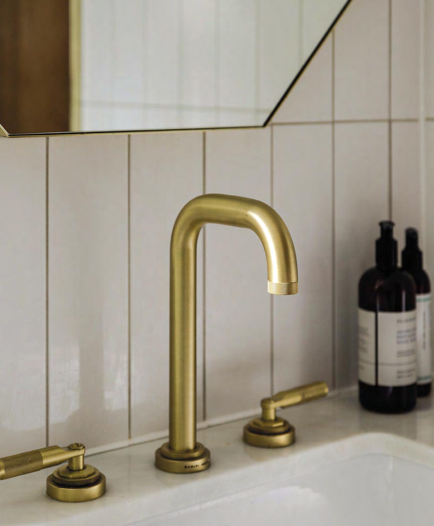 Combining minimalist and classic brassware, the couple mixed the crisp clean lines of a Samuel Heath Xenon shower rose, with the softer curves of Samuel Heath’s Fairfield collection for the shower valve and basin taps.