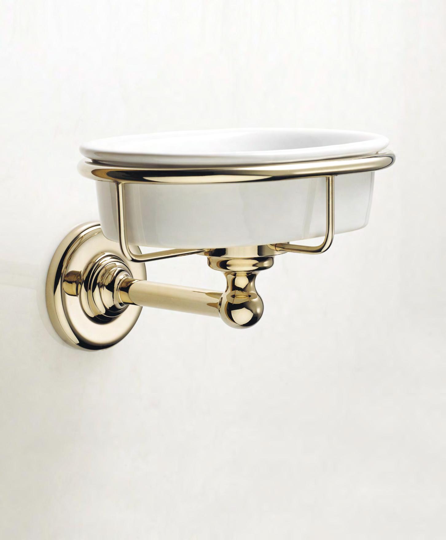 left:L42 WallmountedtoiletbrushinNLnonlacqueredbrassfinish above:N1037WallmountedpaperholderinCPchromeplatefinish