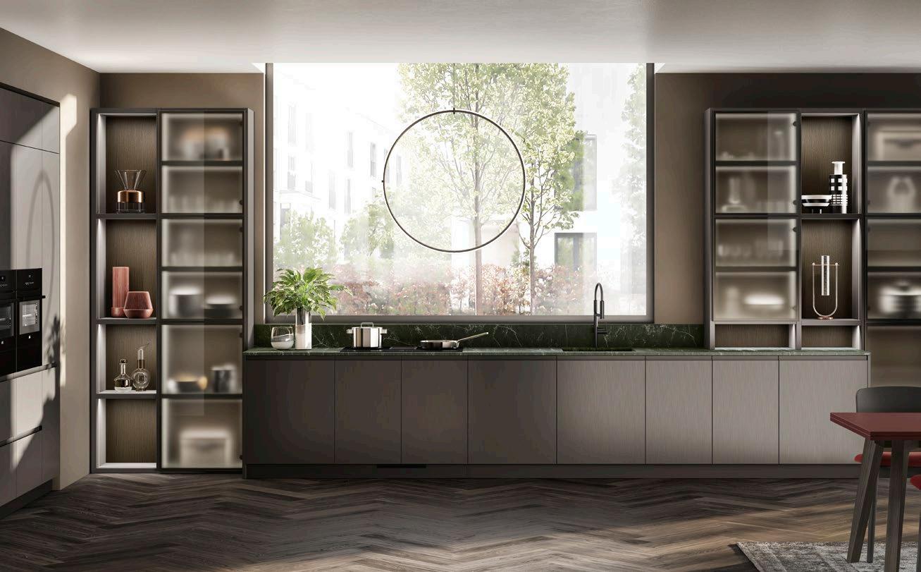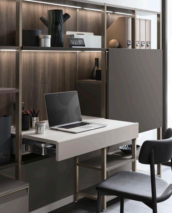 The design of Motus proves capable of being both minimal and comfortable, perfect for furnishing open spaces between the kitchen and the living room with continuity, or for closing off spaces without isolating them altogether. The “Fluida” wall system plays the starring role of this philosophy and it modulates the setting according to the tastes of its users, because the only thing that counts are its occupants.