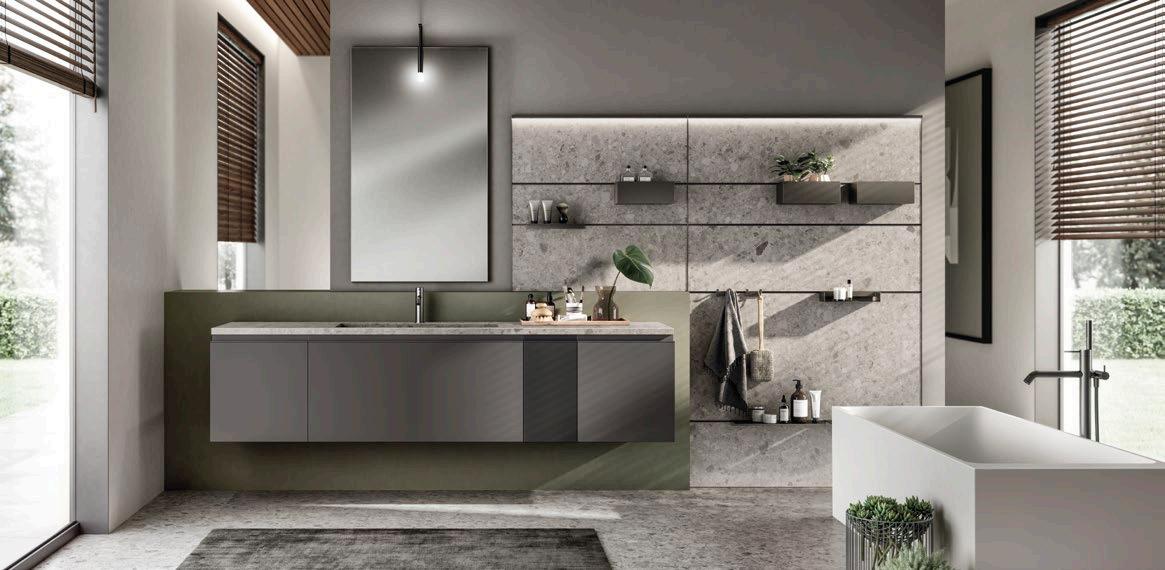 Das gekonnte Spiel mit Farben und Materialien, kombiniert mit strengen Linien, verleiht dem Ambiente des TrattoBadezimmers einen noch nie dagewesenen Charakter, der durch Details und feines Zubehör noch weiter verstärkt wird. Die Front mit dem integrierten Profil macht den Stil dieses Angebots so einzigartig, reich an Charme und Originalität.