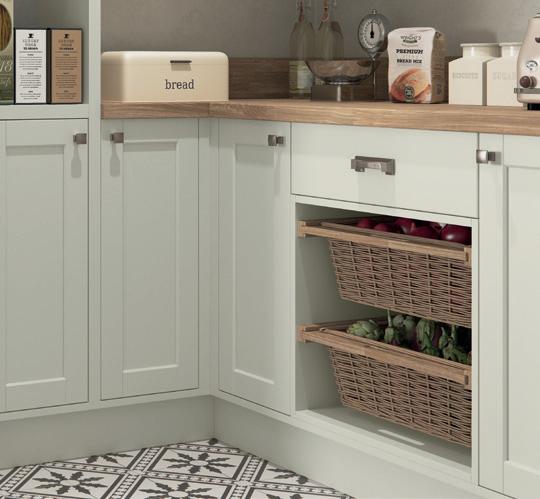 Wooden cabinet accessories add convenience, storage and style to any Gaddesby Kitchen. Put them on show as functional statement pieces or inside a pantry to make the best use of your kitchen space no matter its size.