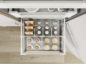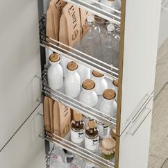 Makes use of the full depth of your cabinet with our Space Tower. Thanks to full extension, even those provisions stored in the furthest corner of the pull-out are easy to access.
