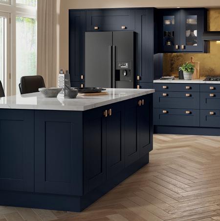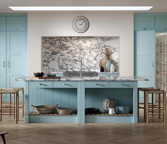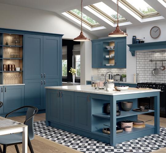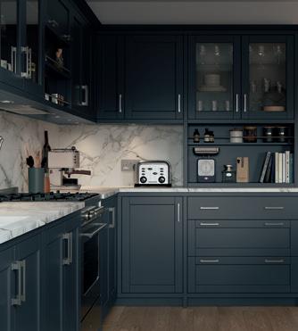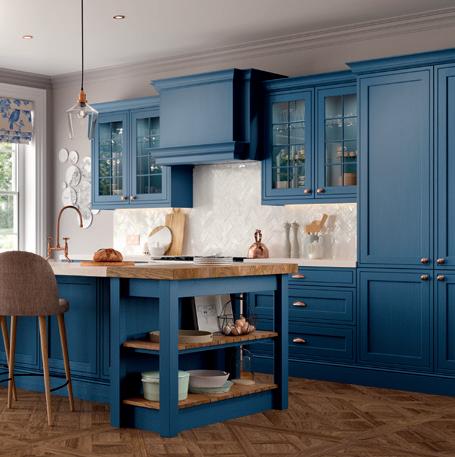 To create an elegant, refined statement, try pairing glazed dressers with a traditional marble worktop. For a richer shaker style, Marine Blue makes for a truly impressive look.