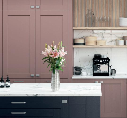 Beautifully distinctive, Colmar can be tailored to suit any taste. Combine Vintage Pink and Slate Blue from our vast choice of finishes, with our White Cararra Marble worktops for a truly dramatic shaker style. Alternatively, consider Colmar’s Light Grey fascia with our 25mm Anthracite Metal Rock worktop for a more contemporary feel.