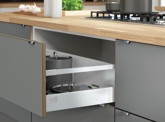 Storage should be about maximising the space available – and the blind corner optimiser does just that. No more dead space in corner units, this cleverlydesigned solution allows you to smoothly slide out one side followed by the second to give easy access to everything stored in there.