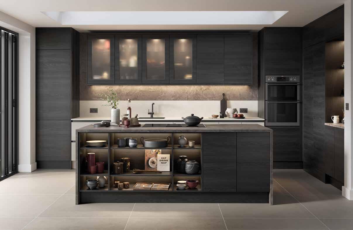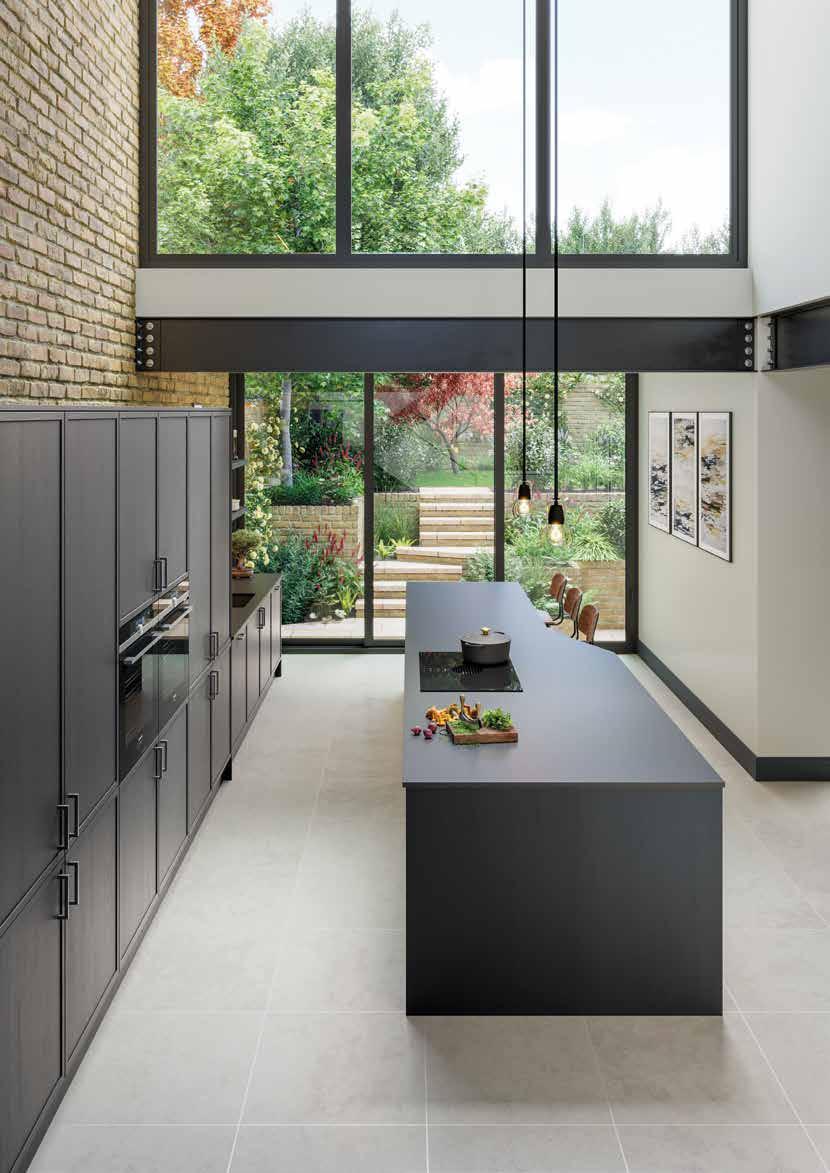 Handles: K1-279 & Handleless rail: Graphite Worktop & splashback: Cosentino Dekton Sirius