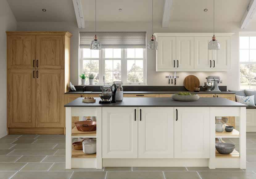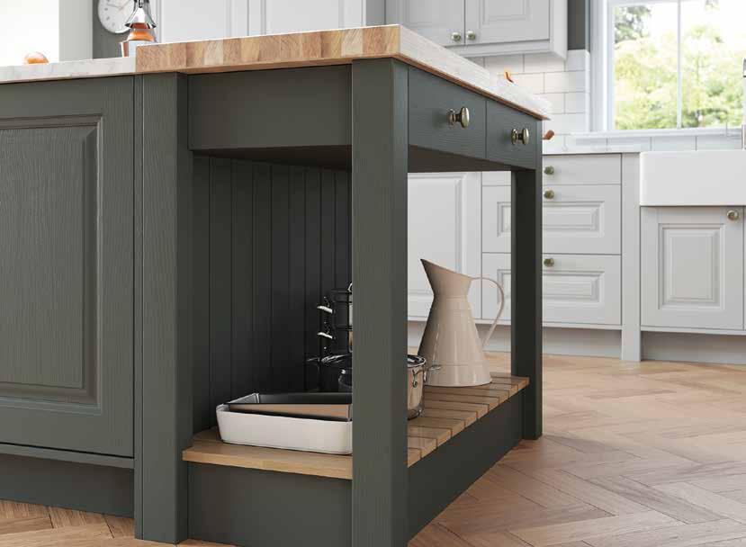 The quintessentially traditional design of the Jefferson door, with its raised centre panel exudes charm and sophistication. Choose from an extensive selection of both standard and made to order accessories to create a kitchen that is truly unique.