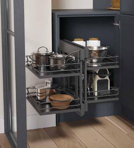 Optimise every inch of your cabinetry with cleverly designed storage solutions that will transform how you use your space. Created to organise a range of items from cookware to cleaning products, any essentials will be easily visible and accessible with minimal effort.
