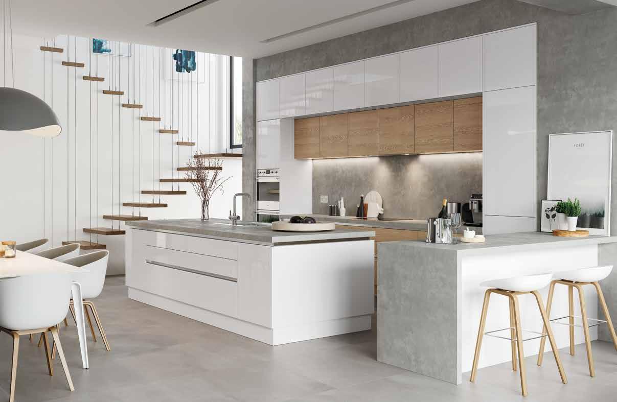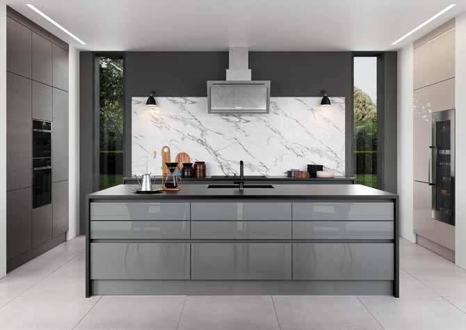 Make the ultimate contemporary style statement with the chic, handleless design of Strada Gloss. Featuring an exceptional mirror-like finish, choose from a selection of on-trend colours to create a stylish space which can extend to other areas beyond the kitchen.