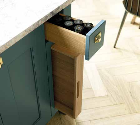 Add a luxurious look to your kitchen with the inclusion of solid Oak storage. Ranging from cutlery inserts and spice drawers to larger pantry units and larders, you can completely transform the way your kitchen operates by creating organised areas that allow you to locate everything you need easily.