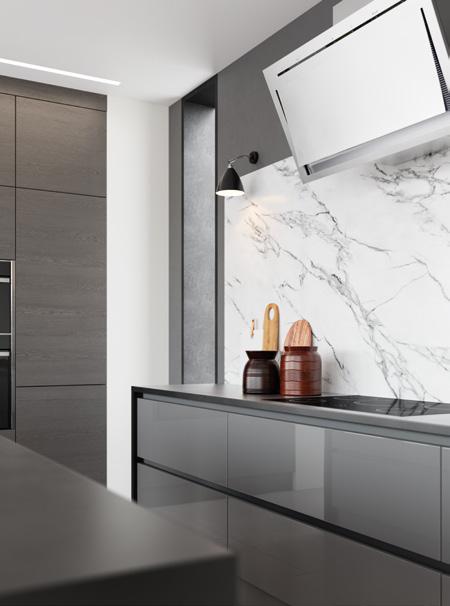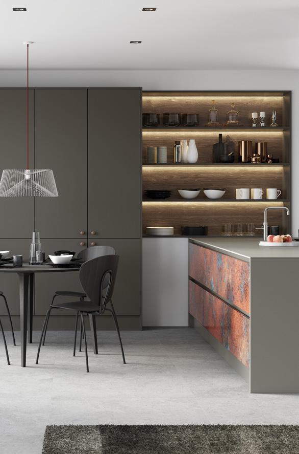 Worktop & splashback: Kronospan Dark Terrazzo Marble Postformed SU K102 See page 182 for full range options. Express colours Made to order
