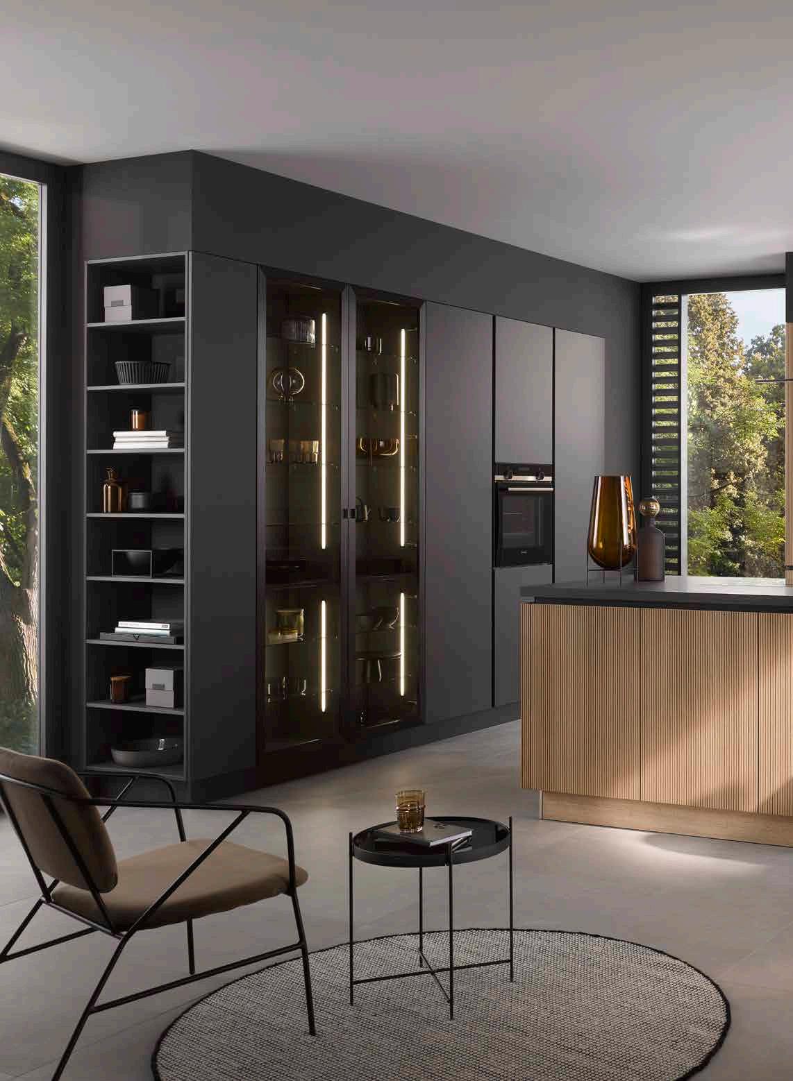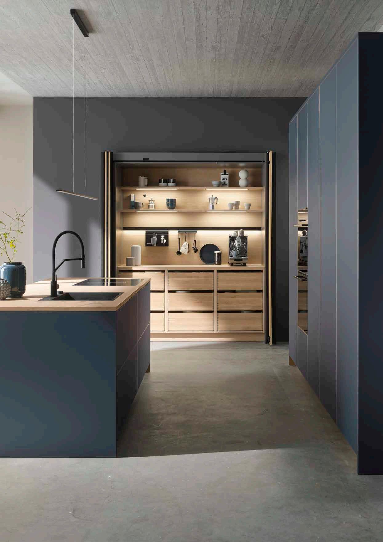 Et særligt køkken, der kombinerer traditionelt håndværk med moderne design - på fascinerende vis. Wienerflet giver fronterne et nostalgisk præg, mens de klare linjer og matbelyste lister emmer af moderne elegance. Minder om svundne tider: Den integrerede åbning giver fri udsigt til naturen. Et mesterværk af stilfuld køkkenarkitektur. Her finder du også noget særligt: Det 61 cm dybe stel giver god plads i udtrækket.