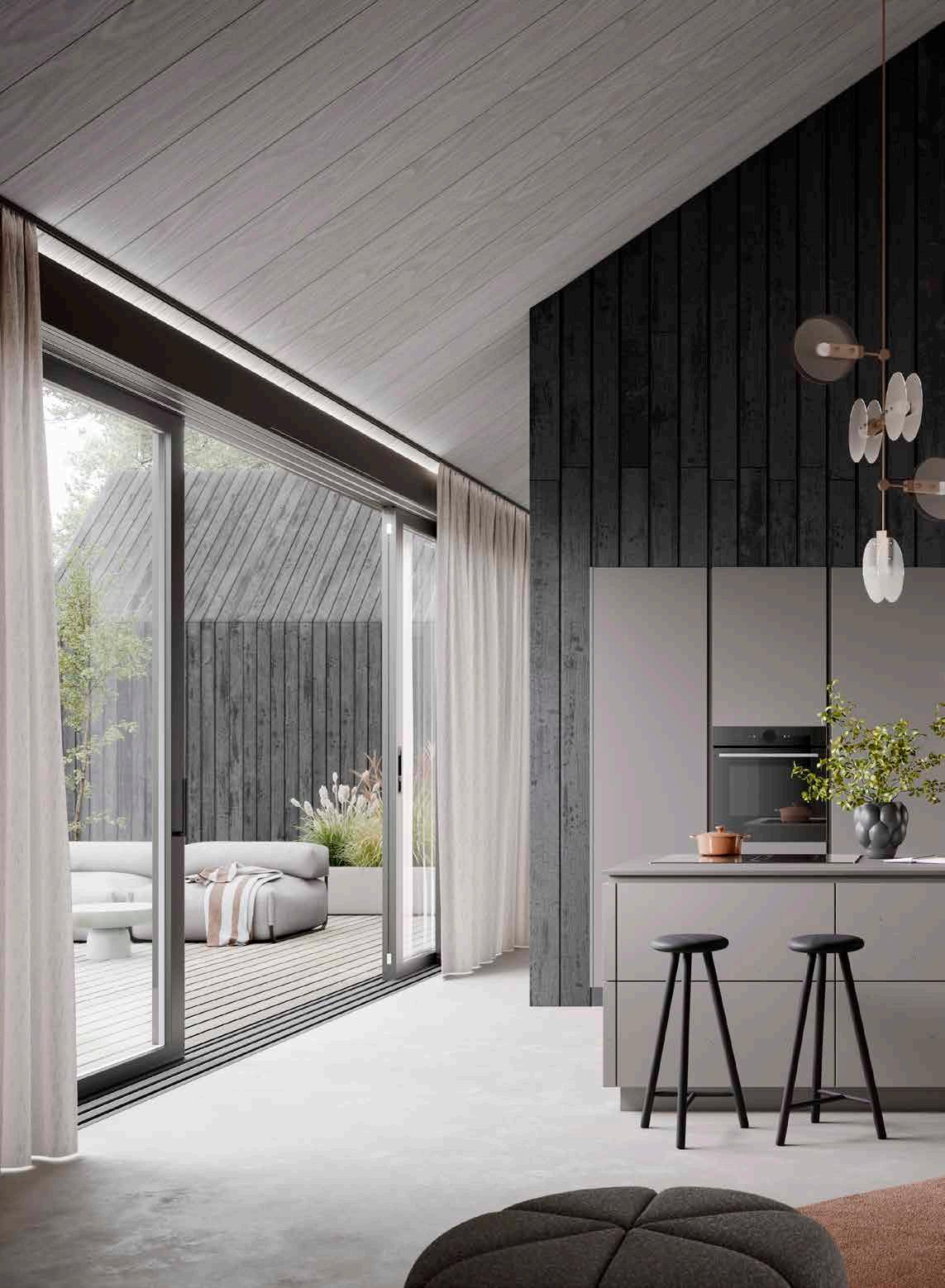 Pocket Doors er en elegant og pladsbesparende løsning i åbne og moderne boligkoncepter. De fungerer som elegante rumdelere og skjuler diskret arbejdsflader og opbevaring. Skydedørene forsvinder usynligt ind i en væglomme, som skaber bedre plads og større fleksibilitet. Pocket Doors kombinerer funktionalitet med stilfuldt design, mens de harmonisk matchende stel, i fim eg-natur, spreder ren og elegant æstetik i ethvert hjem.
