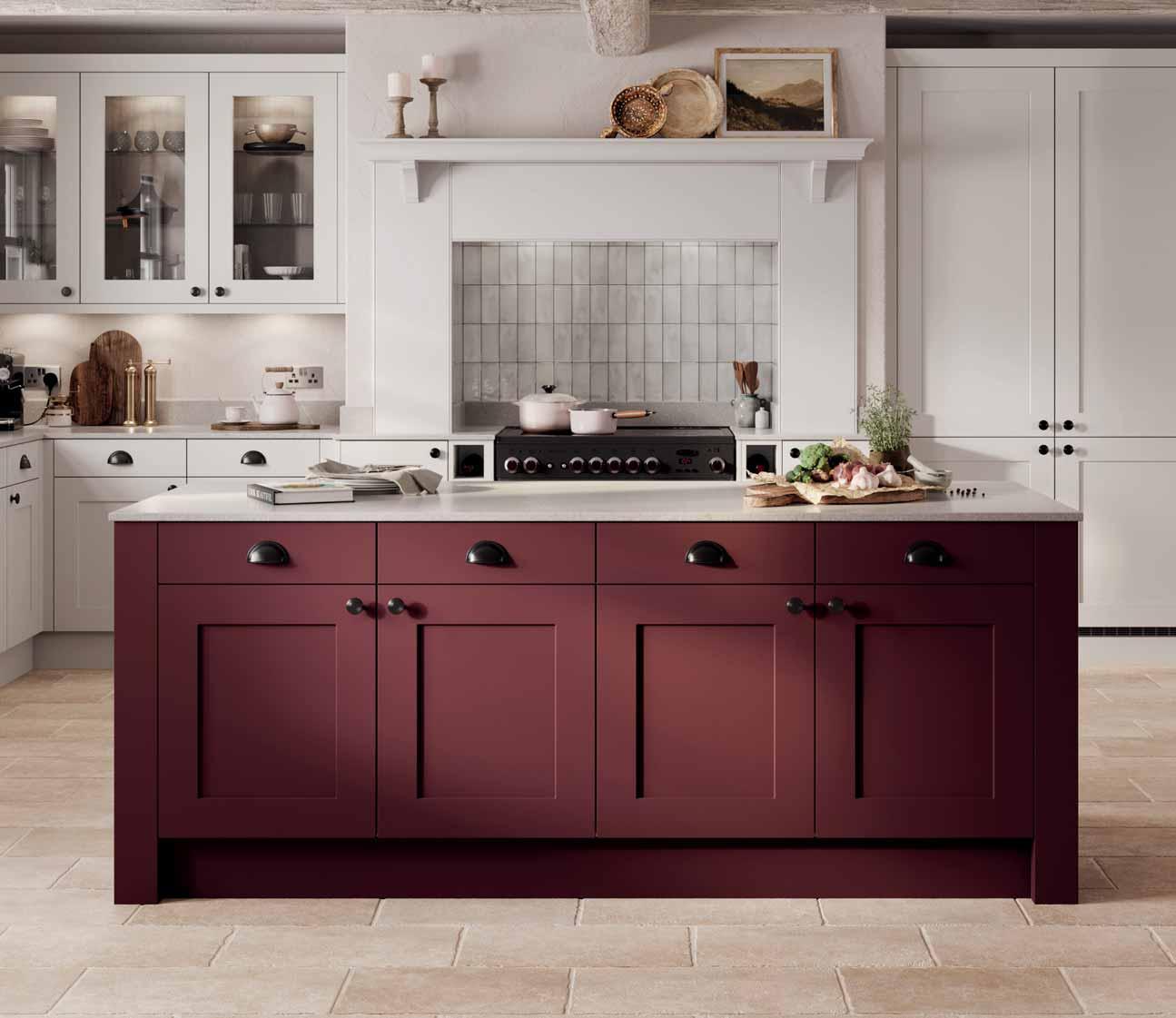 Melrose with its three smooth colour choices is perfect choice for any contemporary kitchen design. With two muted shades of Mineral & Storm Blue to the deeper darker tone of Merlot Red that really makes a statement.