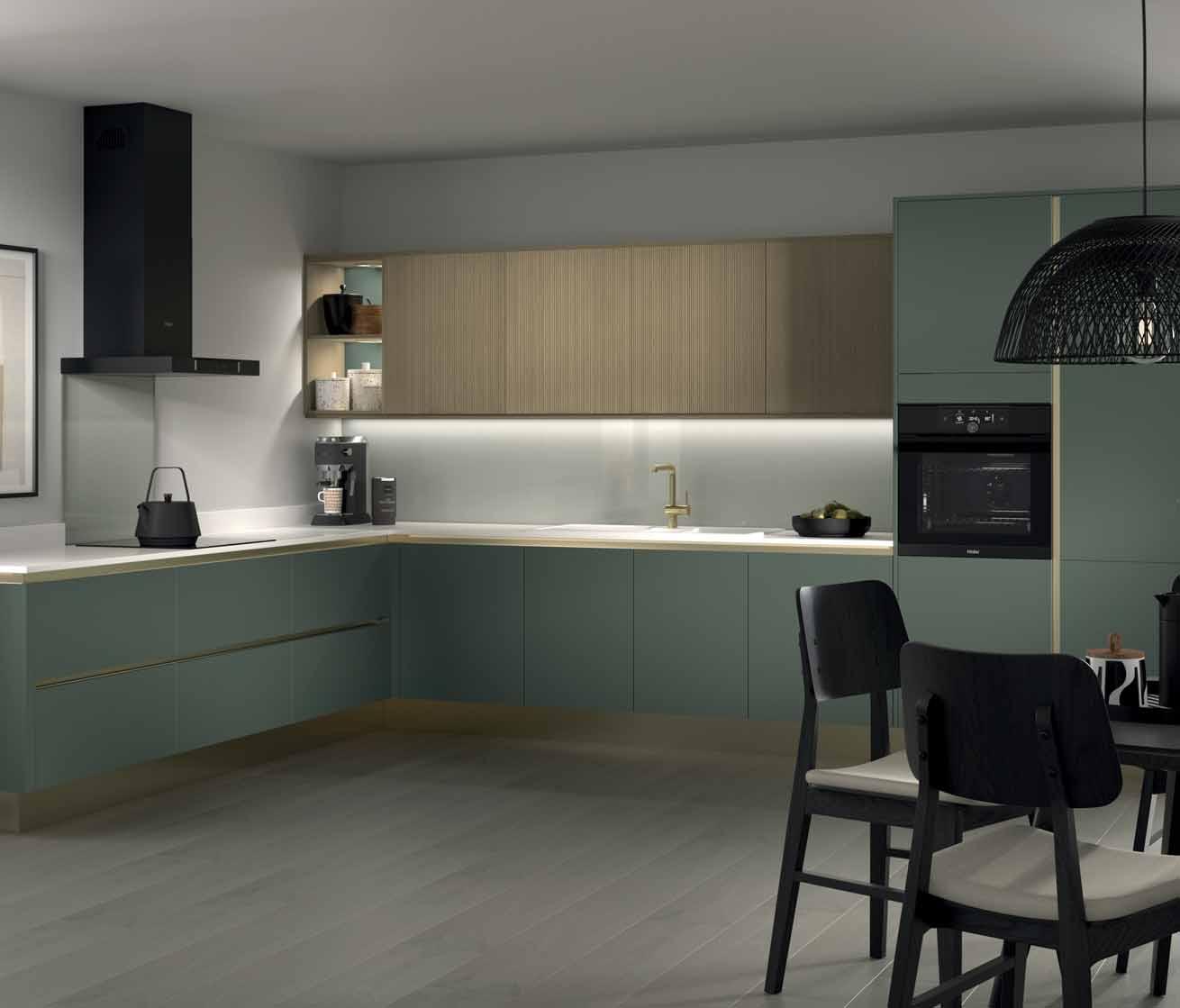 Choose from a single range throughout your kitchen, or be adventurous and use a Turin Dark Stone and Charcoal, Fern Green complement each other perfectly.