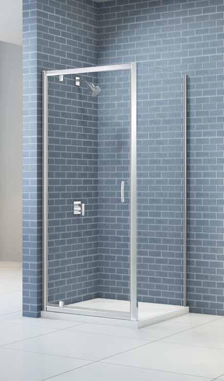 The 10 Series Pivot Door is bound to impress in any bathroom. Its substantial 10mm toughened glass and solid chrome angular double handle provide a style statement that befits the beauty of this
