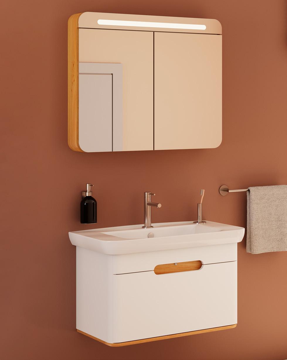 Washbasin unit with 2 drawers, 80cm Matt White £671 – 69051 Matt Fjord Green £671 – 69054 Matt Grey £671 – 69053 Matt Dark Blue £671 – 69056