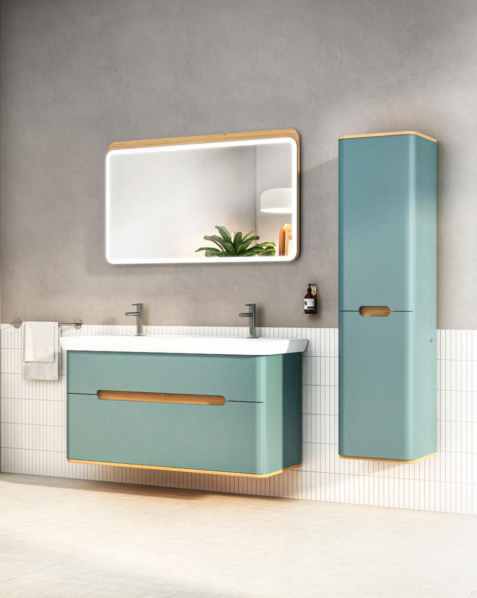 Double washbasin unit, 2 drawers, 2TH Matt Fjord Green £1,498 – 65879 H: 665mm W: 1300mm P: 480mm (Washbasin
