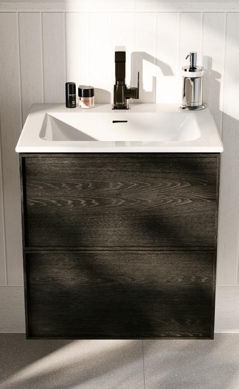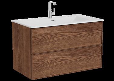 Rectangular vanity basin with overflow hole, 1TH, 60cm, White - £335 (7537B003-0001) Page 47 3 Washbasin unit with 2 drawers, 80cm, Walnut - £1,092 (67370) Page 46