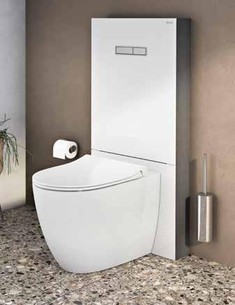 The two-piece front panel made from safety glass, allows for easy maintenance access to the top section of the cistern. The simple and elegant flush panel is already integrated into the Vitrus standing cistern.