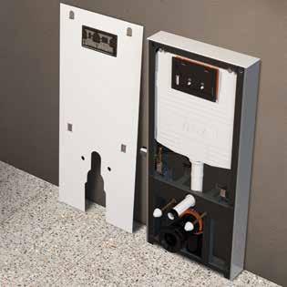 The cistern integrated into the frame has three and six litre water volume for two different flush volumes. In line with the VitrA design principle, the water connection is concealed. The Virtus standing cistern functions without electricity and is suitable for both stud and solid walls.