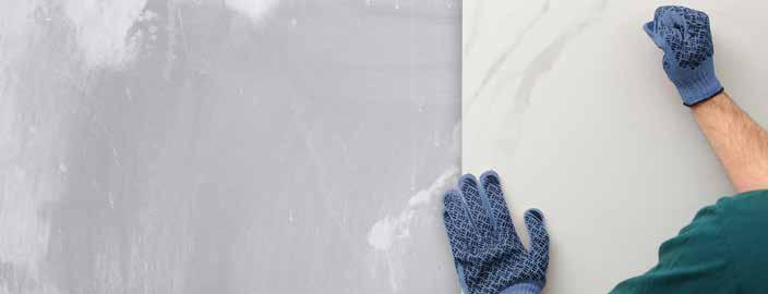 Use Wilsonart Complete Adhesive to affix panels to the prepped surface. Noting that profiles are needed to join and trim panels in our Alloy, Mermaid and Tile Collections