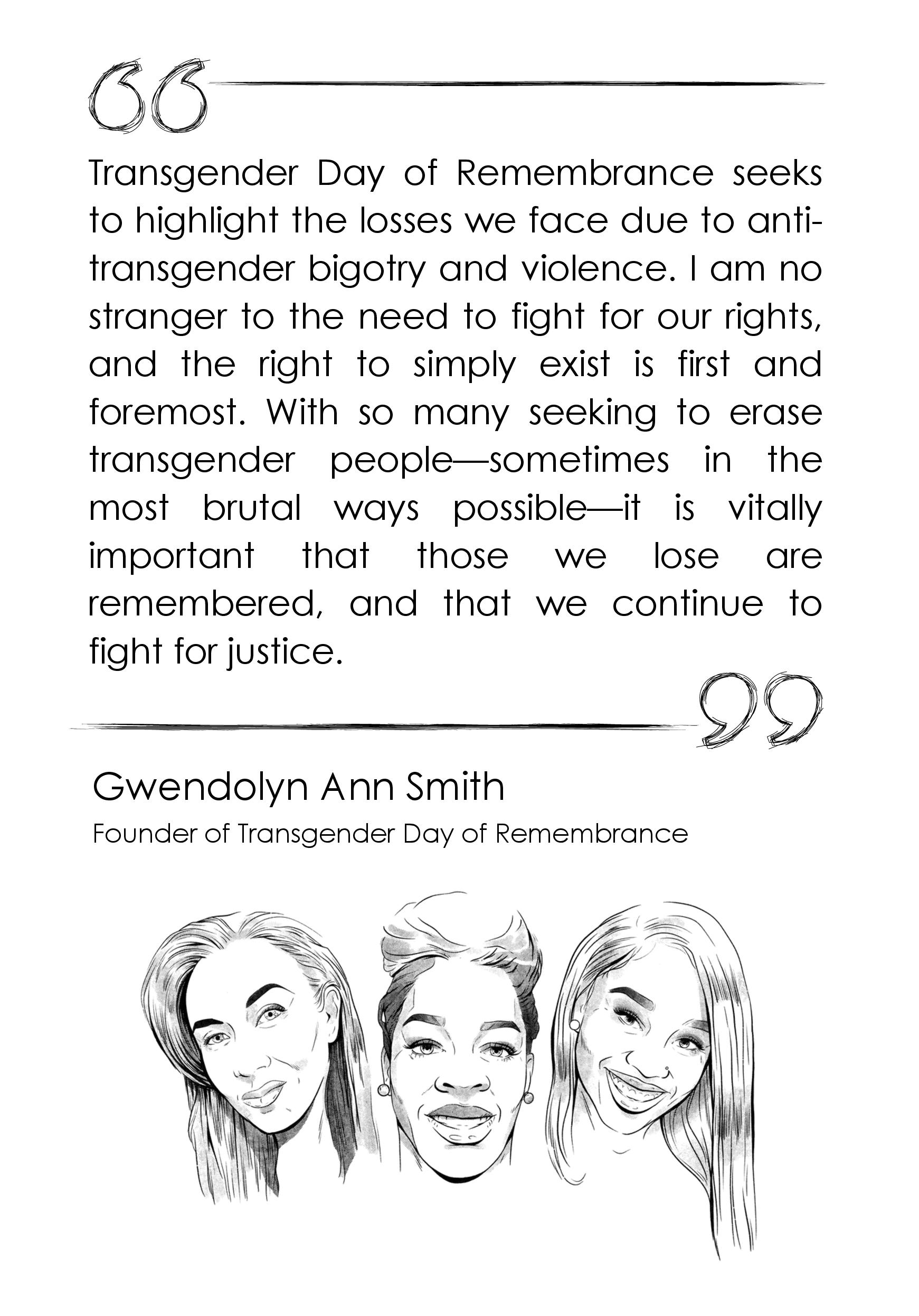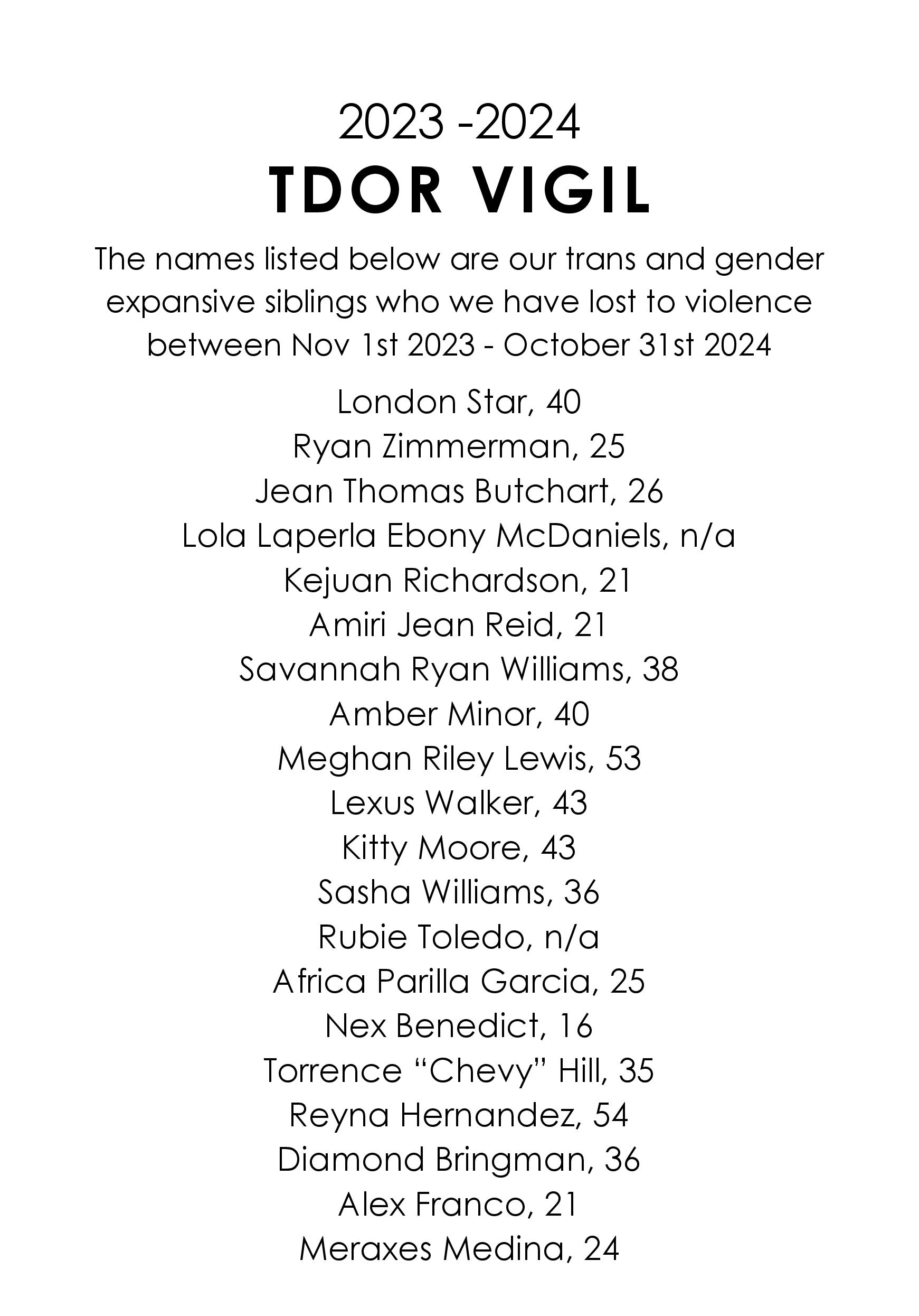 As we approach the 25th anniversary of Trans Day of Remembrance, view this zine to learn a little about the history of TDoR and the names of our TGNC siblings that we have lost.