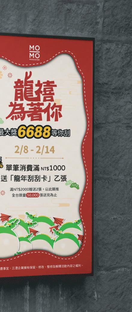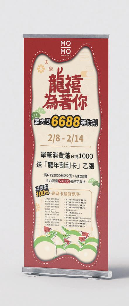 公司全品牌活動,繪製可愛龍年吉祥物 製作成刮刮卡,趣味、好感度都升級。 龍年品牌活動