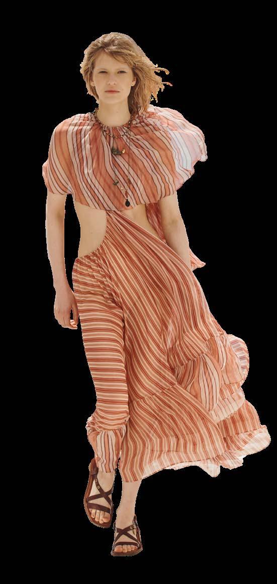 rinas, con pantalones de pierna ancha en un guiño a la vestimenta marinera. Es romántico, fuerte, un poco extravagante, y decididamente moderno en su confianza.