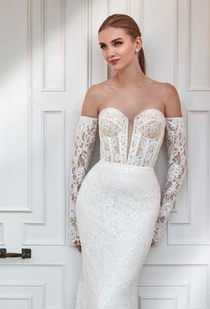 Each design is created with transformation in mind, thanks to layered skirts, detachable sleeves, and removable trains that offer multiple styling possibilities-allowing the bride to reinvent her look throughout the celebration. Low-waisted corsets, draped necklines, and fluid silhouettes lend a contemporary aesthetic that enhances the natural beauty of every woman.