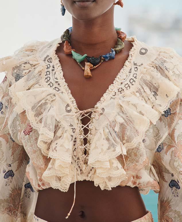 In Twisted Romance, Zimmermann embarks on a journey through nostalgia, femininity, and the fantasy of escape, offering a preview of next year’s Resort Collection, inspired by wistful pirate adventures and the flamboyance of the New Romantics. Fluid fabrics, dynamic silhouettes, and illustrations that capture a carefree spirit play with contrasts-diaphanous silks set against structured denim, and delicate lace paired with precise tailoring.