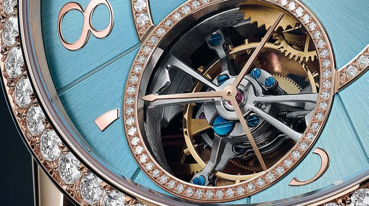 The latest interpretation of JaegerLeCoultre’s Rendez-Vous Jewellery Tourbillon once again reflects the Maison’s enduring philosophy: blending aesthetic beauty with technical mastery. The iridescent dial, in a distinctive blue-green hue, pairs richly with the 39 mm case crafted in 18-carat pink gold (750/1000). A halo of brilliant-cut diamonds illuminates the watch, while the breathtaking tourbillon display transforms it into a true jewel of horology. As far back as the 1880s, the LeCoultre Calibre 7HP powered enamelled watches set with diamonds and pearls-pieces often worn by women as necklaces or brooches.