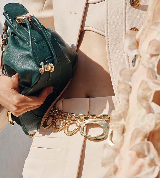 Floral volumes and fabrics such as jacquard organza, embroidered stretch lace, and sequin tulle bring femininity and lightness, evoking a strong sense of freedom within elegance.