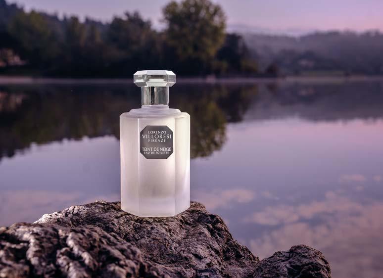 Teint de neige es el perfume de los polvos faciales, del talco, un Eau de Toilette suave, delicado y envolvente, pero intenso y persistente. Un aroma impregnado de la riqueza de los extractos naturales de flores que evocan la luz, las imágenes y la atmósfera de la Belle Époque.