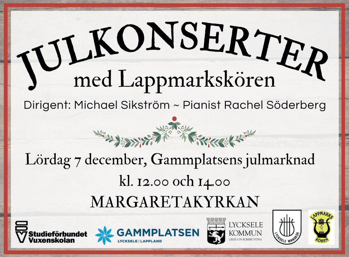 Söndag 8/12 kl 18 Adventskonsert i Lycksele kyrka Hemvärnets musikkår Lycksele och Vox Lapponica med solister