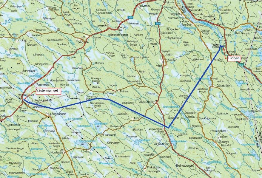 Vattenfall Services Nordic AB arbetar just nu med att uppföra en ny 150 kV ledning mellan Tuggen och Västermyrriset, på uppdrag av Vattenfall Eldistribution AB.