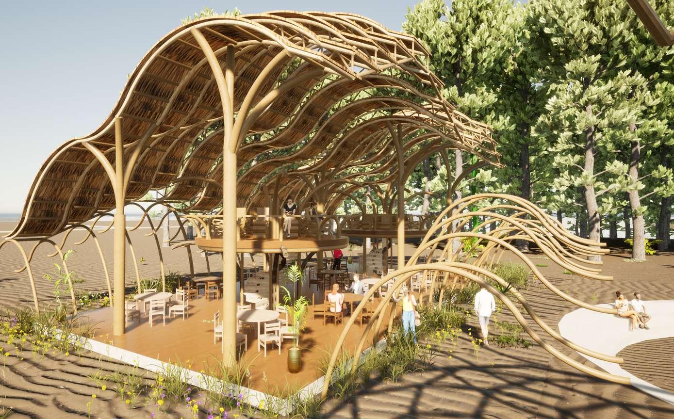 SSvarga is a javanese word that means heaven Semilir is a javanese word that means cool or refreshing Svarga Semilir is a place where people can relax, eat, and watch a performance It is designed as an open space considering the weather at the site and its natural surrounding The air in the building feels cool because the wind can enter freely. Svarga Semilir is a multifunctional building located on the beach/coast More precisely, it is located on Widuri Beach