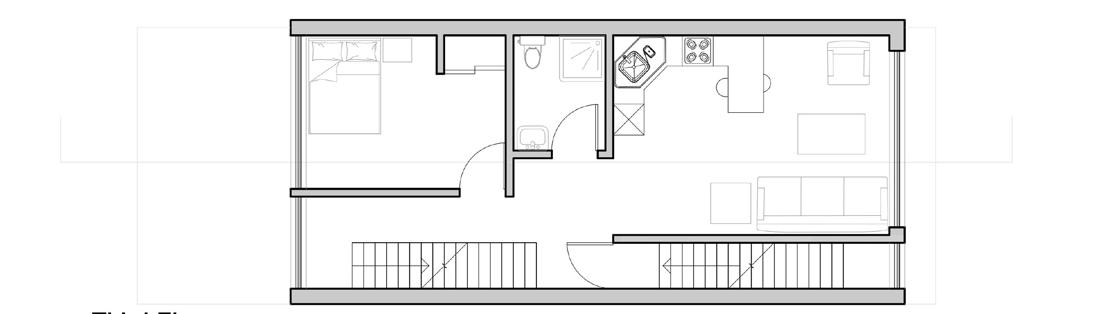 Multi-Unit plans with wheelchair accessible ground floor unit and third floor unit with access to balcony.