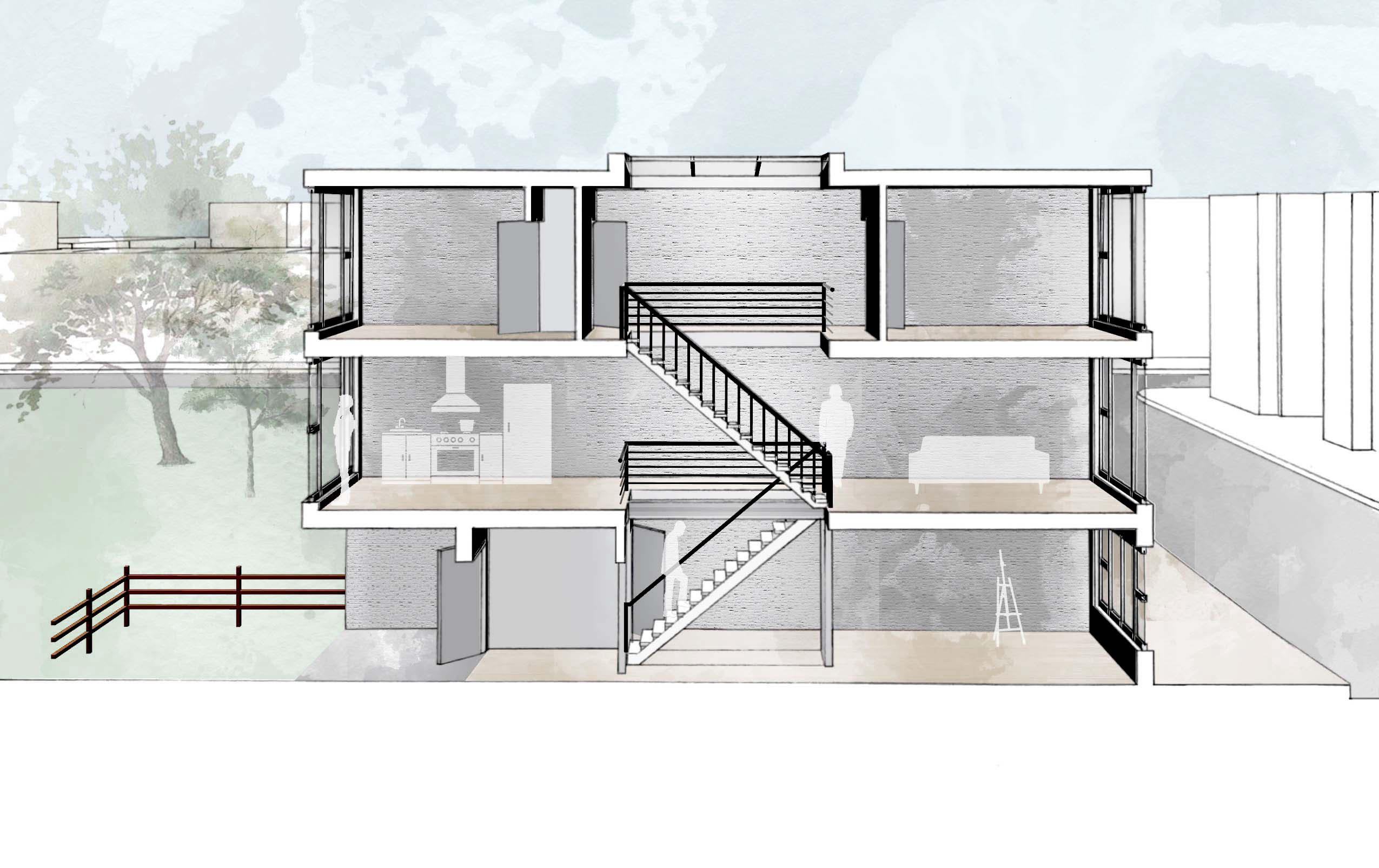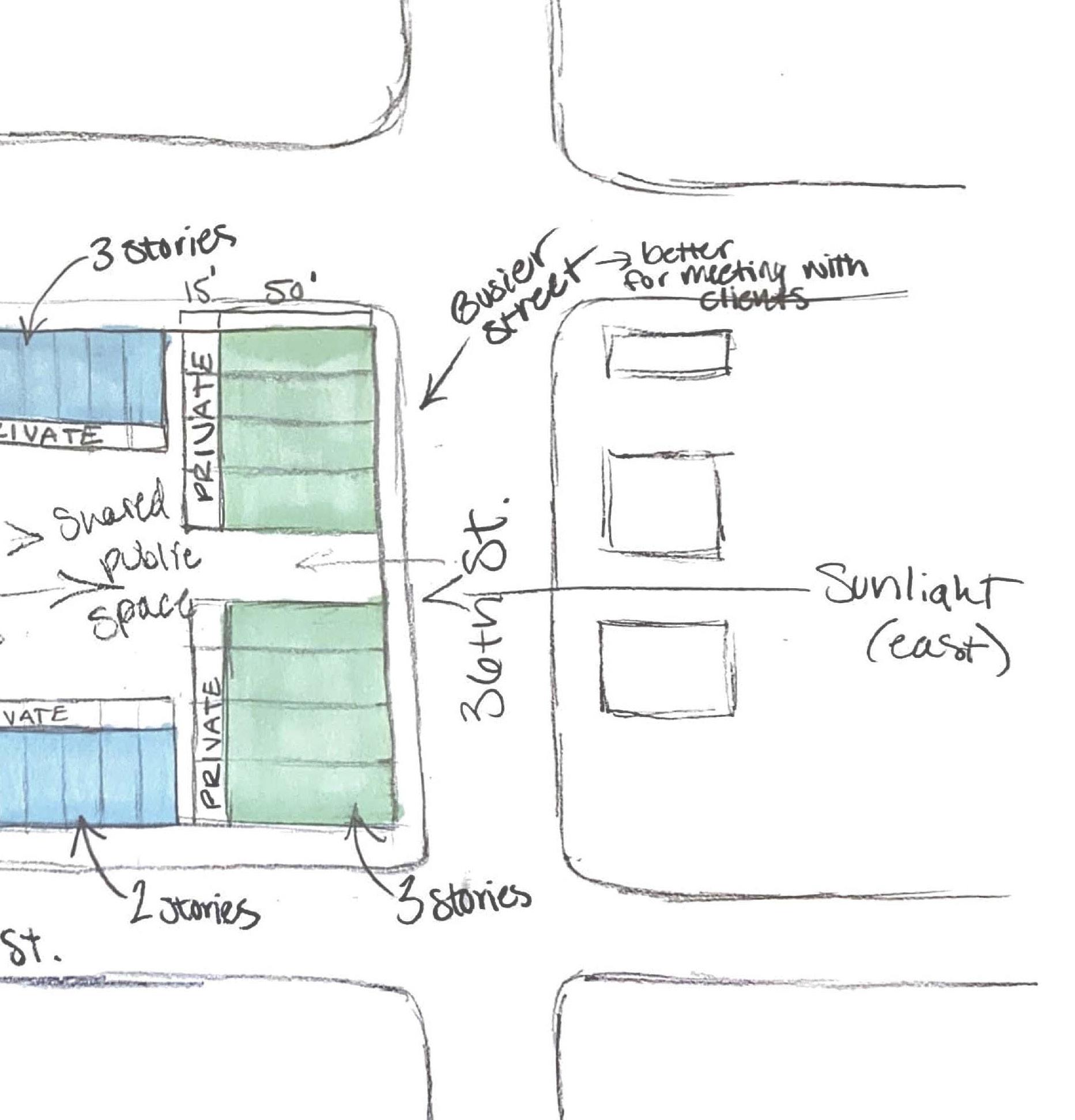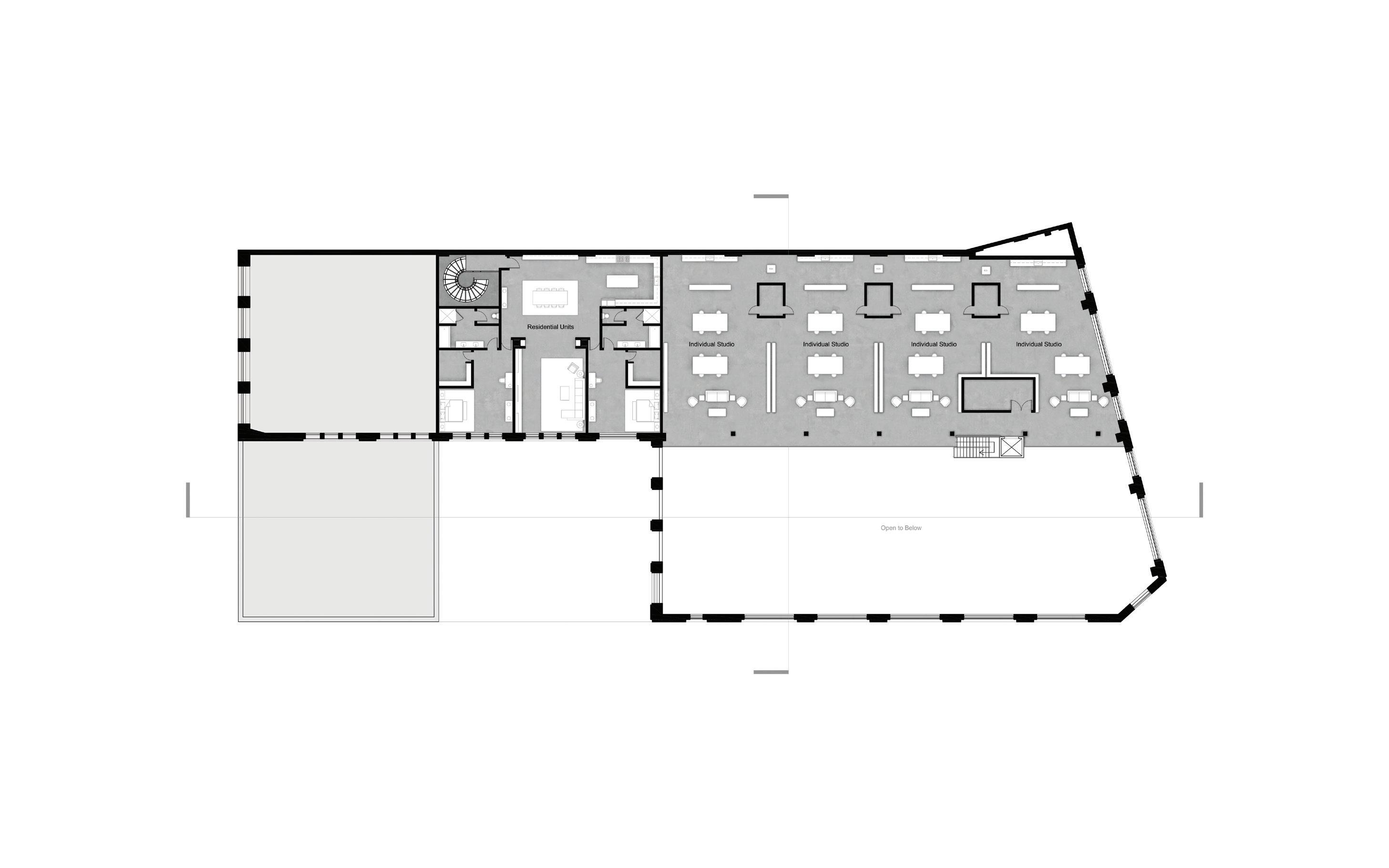 Live/Work plans with workspace located on ground floor for easy cilent accessibilty and residential spaces above.