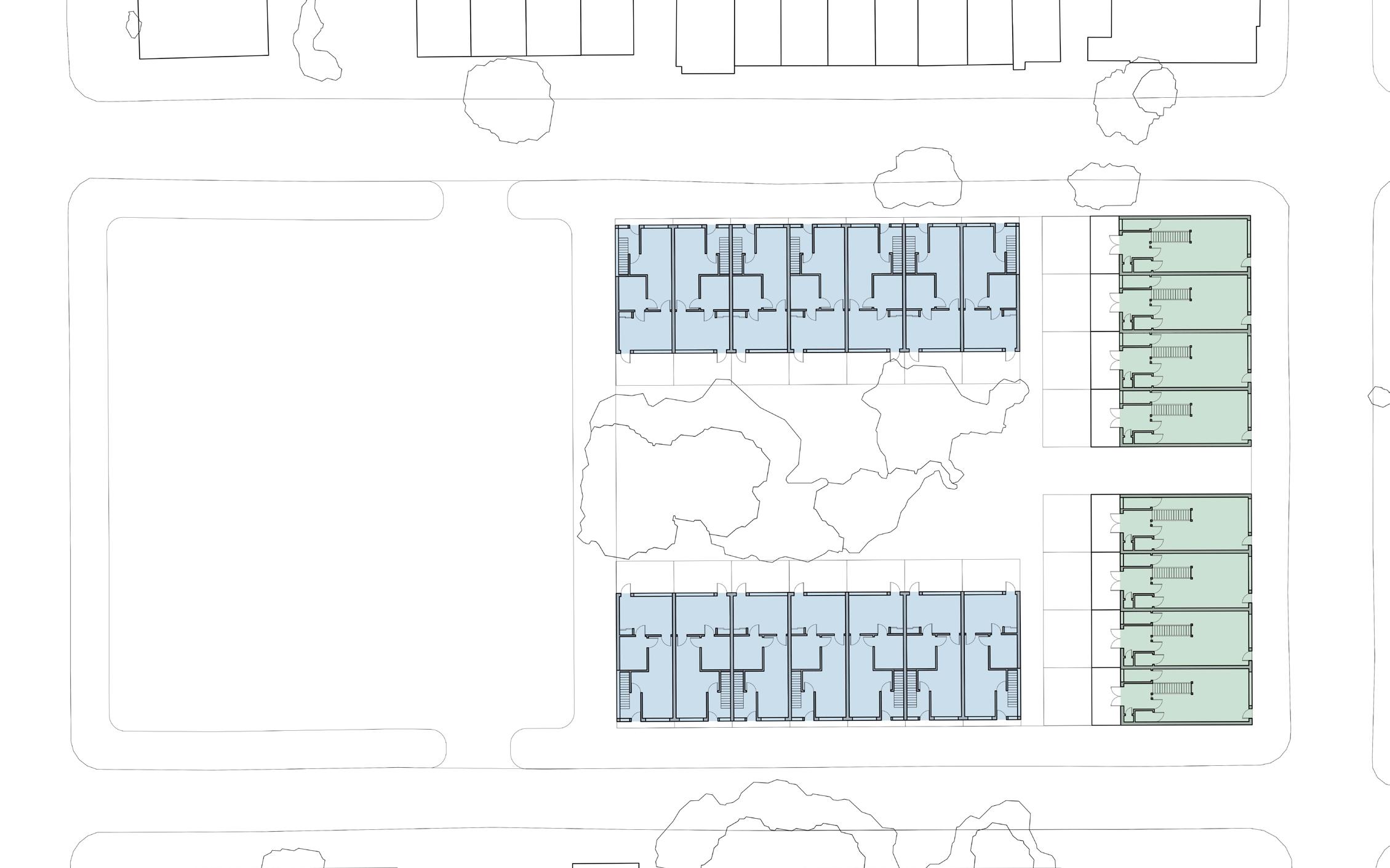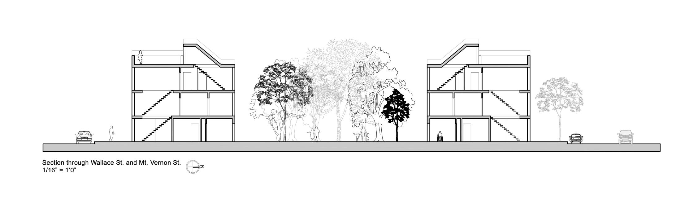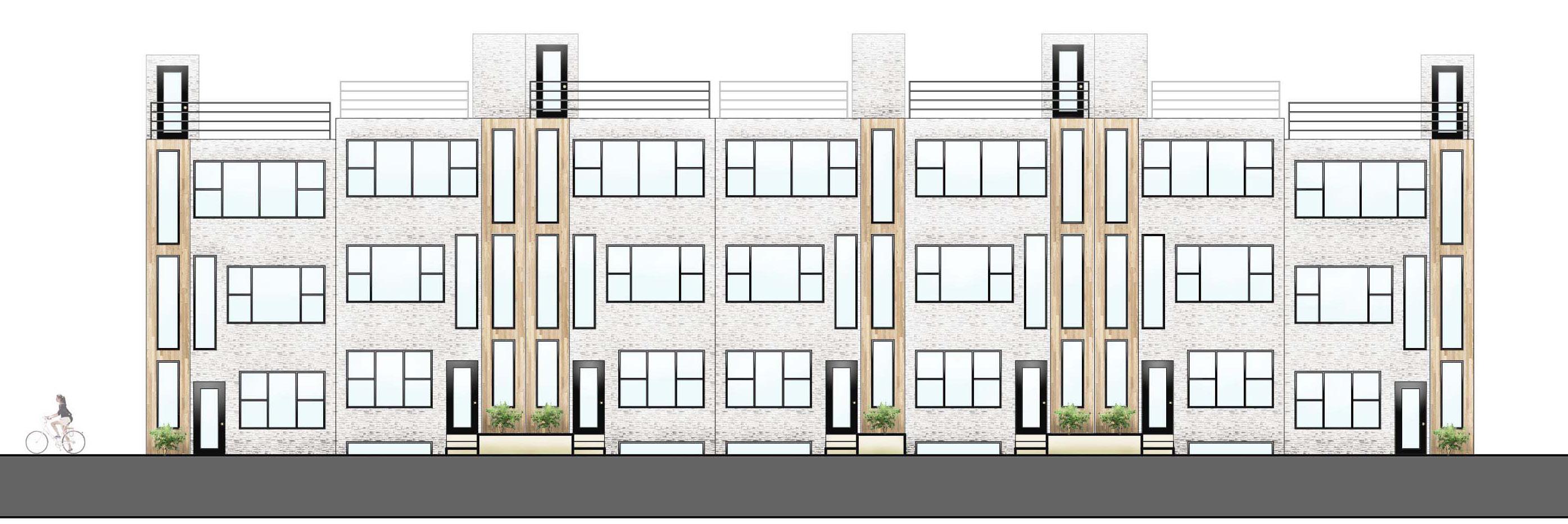 As an addition to the Mantua neighborhood lies a new complex of live/work and multiunit rowhomes. The strategic placement and arrangement of these homes works together to allow maximum sunlight to touch the homes, as well as the shared community space between them.