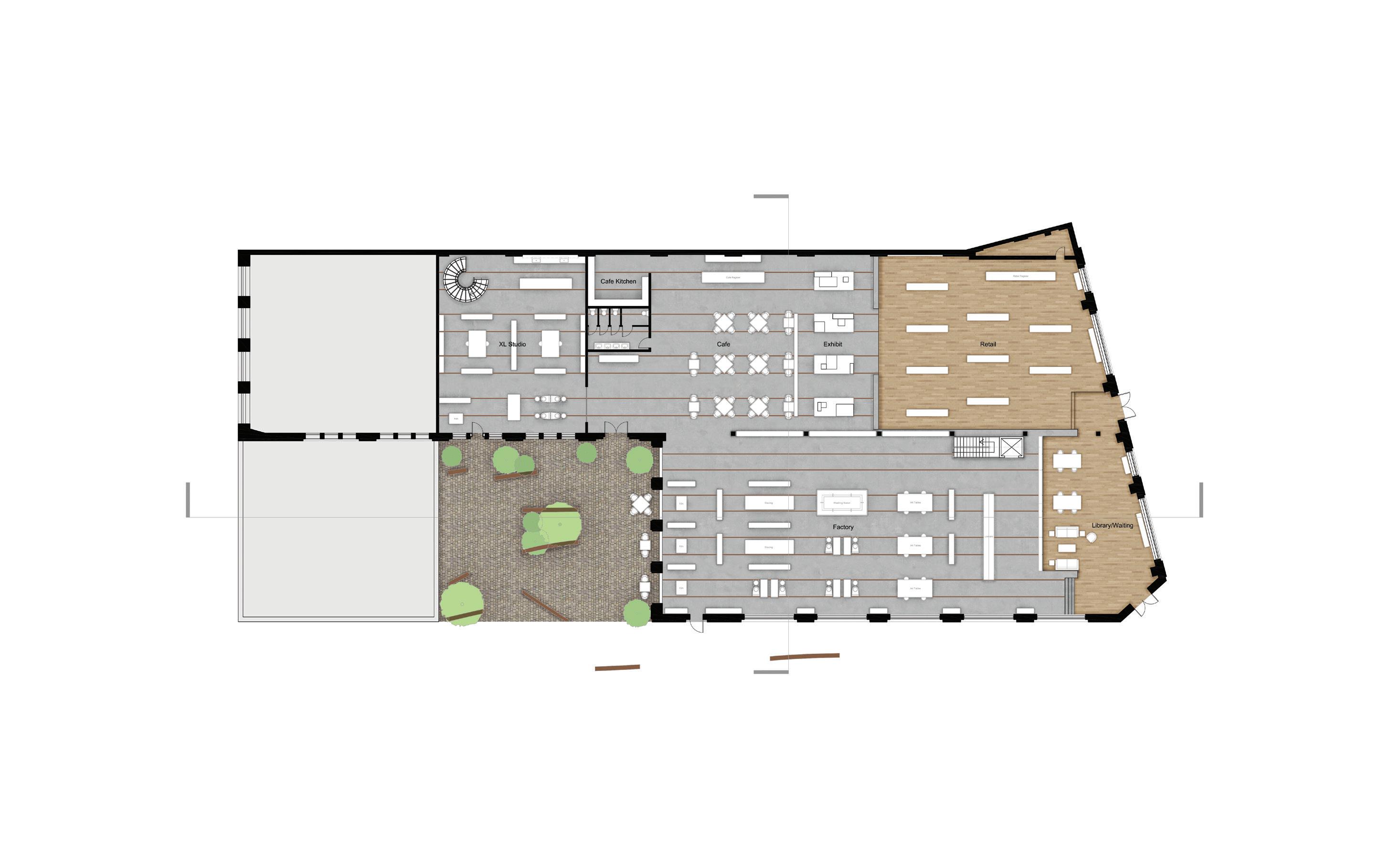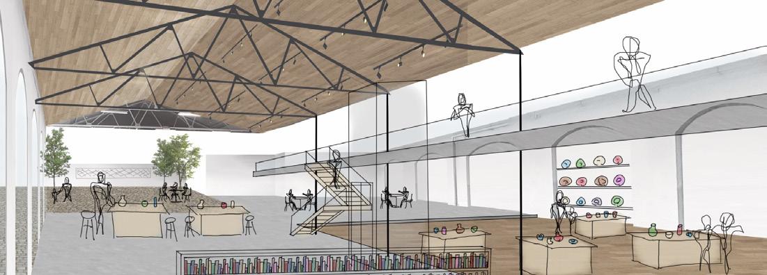 Operating as a ceramic studio located in Copenhagen Denmark, the design connects to the pre-existing buildings’ history as a train hub. As an adaptive reuse strategy, the original architecture is preserved and celebrated. Incorporating an open layout helps create a friendly, engaging, and connected atmosphere amongst users throughout all the different spaces. The design is community oriented to promote socialization amongst the various members of the surrounding neighborhood.