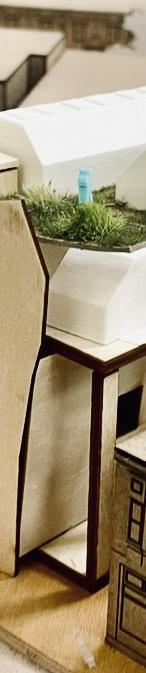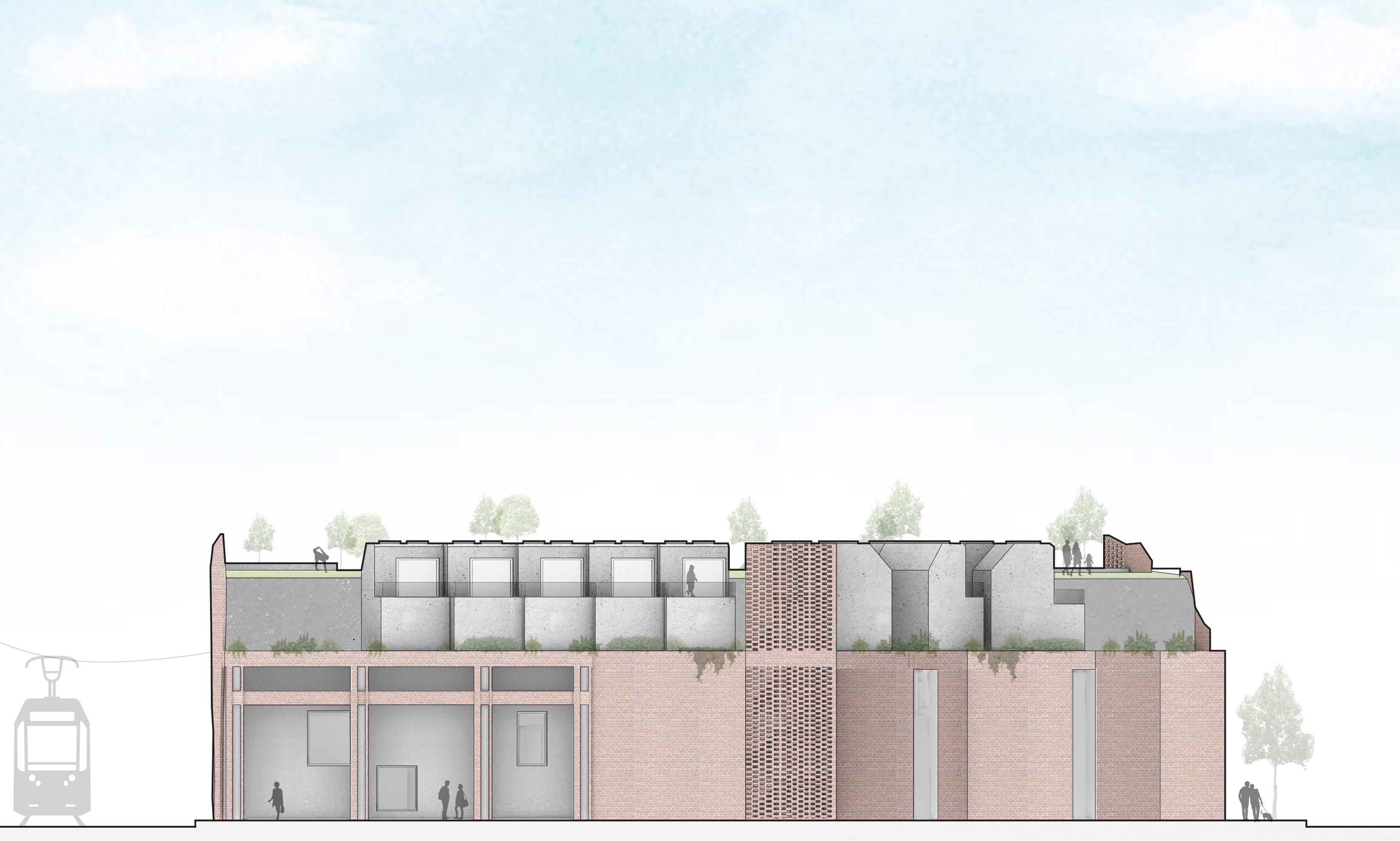 ABOVE: Site analysis for selected plot BELOW: Exterior render with materiality to show apartment arrangement