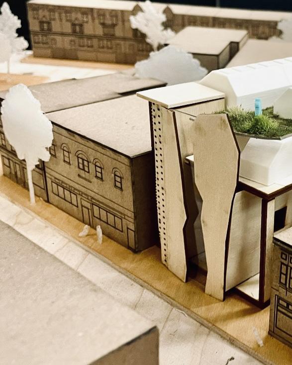 At DRAW Collective, an educational and health-focused design firm in Pittsburgh, PA, I contributed to an adaptive reuse project aimed at transforming the abandoned News Tribune Building into a children’s museum for Neighborhood North. My role focused on designing specific interior and exterior elements, as well as creating renderings to present to stakeholders at a community meeting to inspire donations for the project. I collaborated closely with the client and my principal architect to incorporate feedback into the designs. For the interior, I contributed to the front lobby space, including the design of a display piece to showcase the museum’s donors, as well as a children’s play area on the lower level. On the exterior, I worked on an ADA-compliant ramp leading to the side of the building, adding a decorative facade that enhanced both accessibility and the building’s aesthetic appeal. A key feature of the exterior design was the “Giving Gears” exhibit—an interactive installation where turning one gear rotates all of them, symbolizing the communal revitalization efforts of the neighborhood. These designs were presented to the community to generate excitement and support for the adaptive reuse of this historic space.