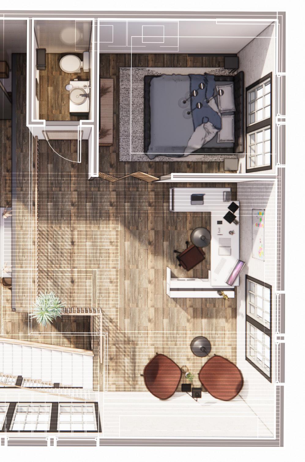 This project is designed to give students a small taste of residential design. Each student got to choose a client and proceeded to design a downtown loft based on the description and needs of the client. The loft spaces are from an older, commercial building but designed and converted into an urban, residential space for each client.