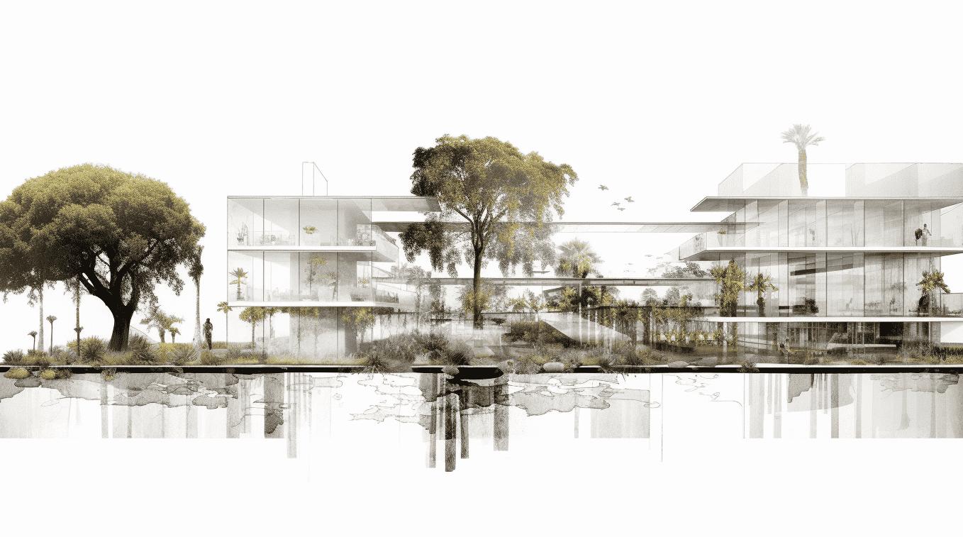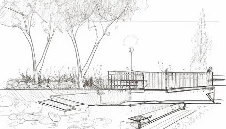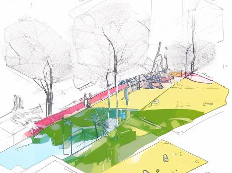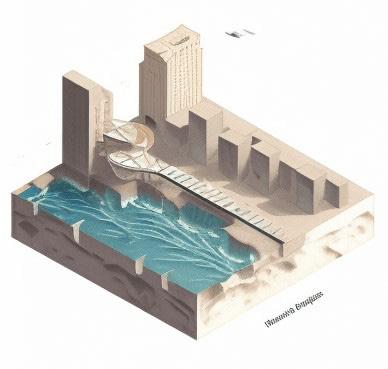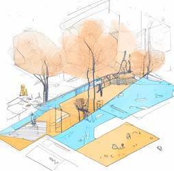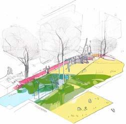 Along the canals are infrastructure such as public squares, biking paths, pavilions, and bridges aimed at connecting the community.
