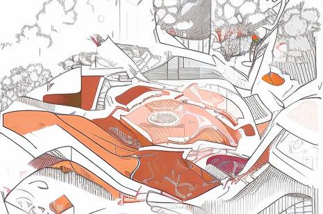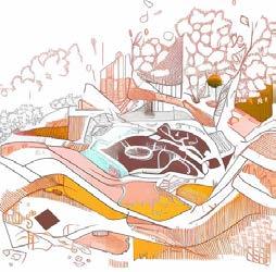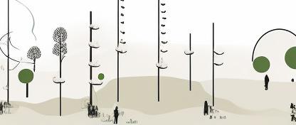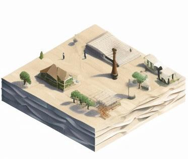 4. Inspired by the smoke of fire pits, a silk-like path acts as the central connector, stitching the hearths together.