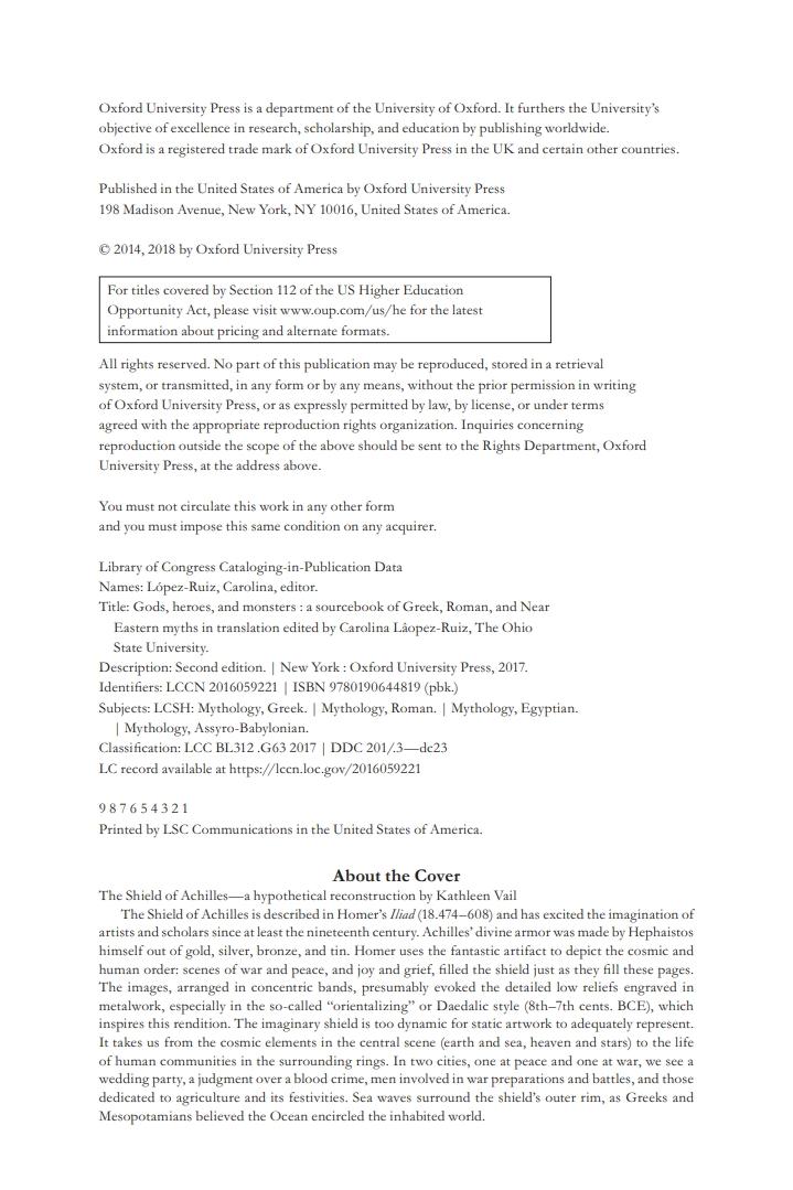T itle: God $. heroes, and mon$te rs: a $Ou rceboo k of G reek, Roma n , and Nea r E:1stern myth $ in t r anslation e d ited b)' C~trolina L:iopez-Ruiz, The Ohio State University.